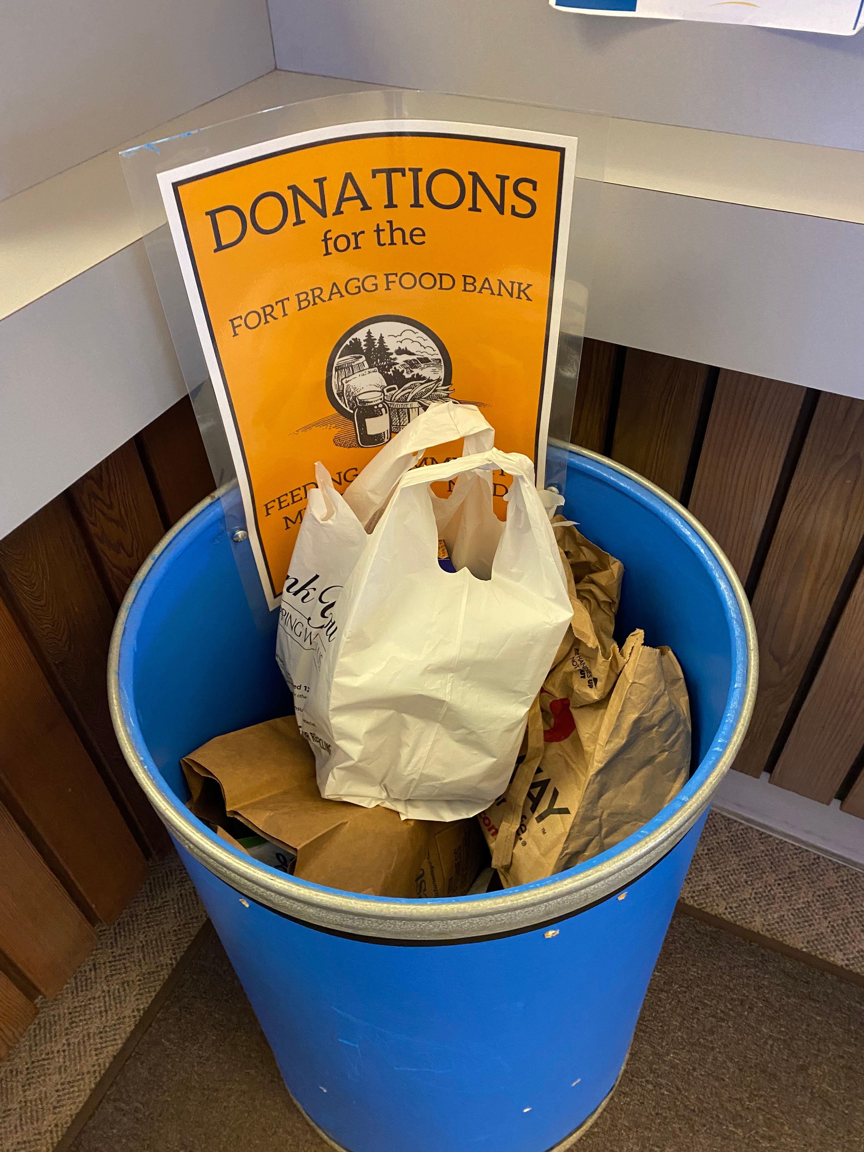 The Fort Bragg Food Bank receives funding for food, nutrition education, and/or operational expense through various government and private groups. However, it is the individuals and businesses in our local community whose cash donations typically make up half of their cash budget and whose food donations make up about 45% of the food they distribute.